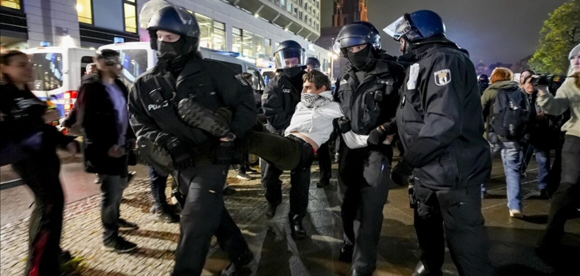 Policia në kryeqytetin e Gjermanisë, Berlin, ka intervenuar ashpër ndaj protestës në mbështetje të Palestinës, raporton Anadolu.