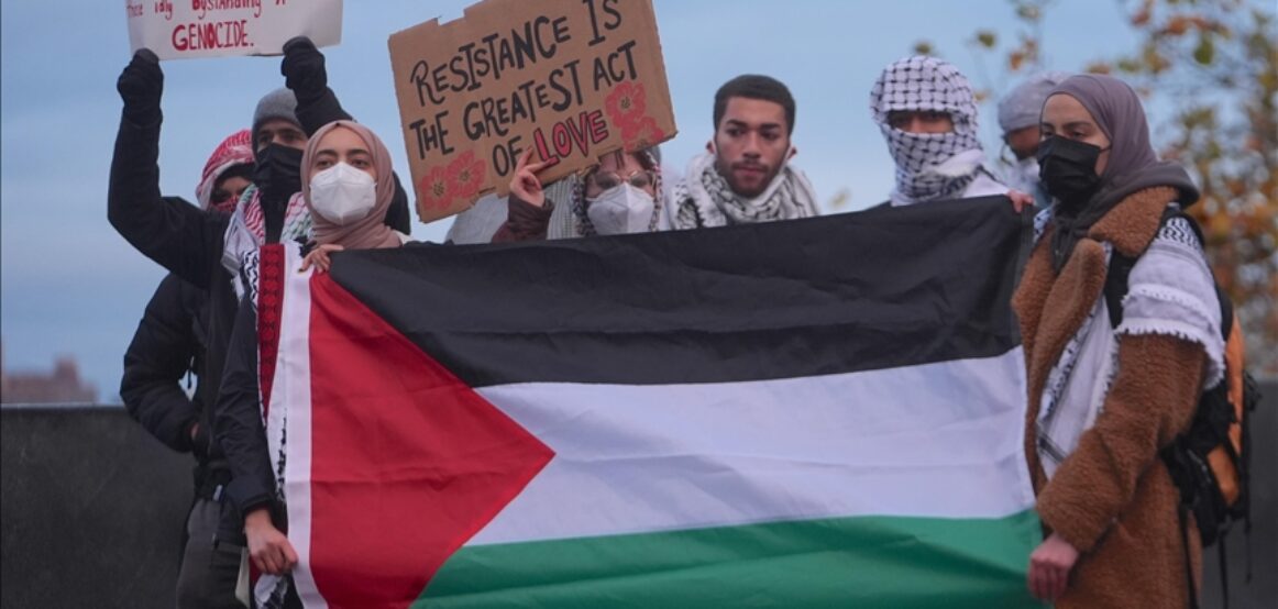 Pro-palestinezët demonstruan në tubimin e quajtur “Jo kriminelë lufte në kampus” ndërsa ish-presidenti i SHBA-së, Bill Clinton dhe ish-sekretarja e Shtetit, Hillary Clinton morën pjesë në panelin që shënonte 30-vjetorin e vrasjes së ish-kryeministrit të Izraelit, Yitzhak Rabin në nëntor 1995.